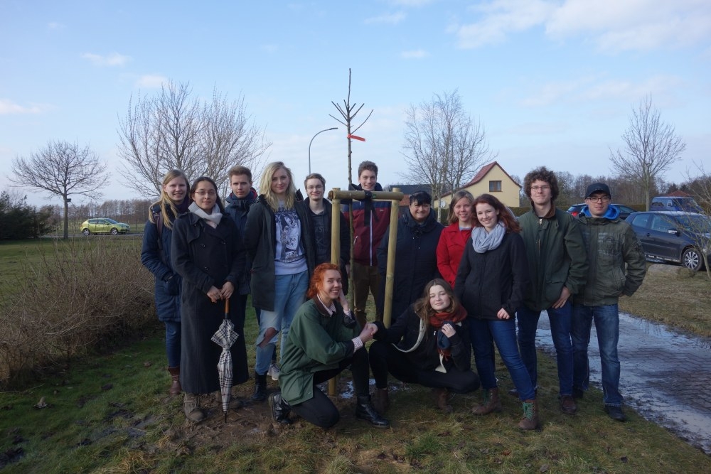 Es war der sonnige, wenn auch etwas kühle 4. April 2018, an dem wir, die Klasse 12B vom FFG aus Bad Doberan, in der Obstarche in Reddelich zusammenkamen. Mit der Idee, gemeinsam einen Apfelbaum dort zu pflanzen, trafen wir uns mit der Koordinatorin Frau Dr. Kastell. Sie unterstützte unser Vorhaben mit fachkundiger Einweisung  sowie benötigtem Material und natürlich einem jungen Bäumchen. Nachdem jeder selbst Hand anlegen durfte, sind wir nun glücklich unseren Baum, den wir zusätzlich noch mit einem Schildchen kennzeichneten, jederzeit besuchen und sein Wachstum begutachten zu können. In naher Zukunft wird unser Projekt buchstäblich Früchte tragen, die wir selbstständig ernten können. Gegen kleines Geld wird unser Baum nun von der Obstarche gepflegt.